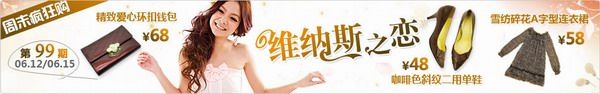 1~4是設計的女裝banner,大家可以看到在用色和樣式上很好的渲染和融入了環(huán)境通過豐富的聯(lián)想別出心裁的展示浪漫色彩 對文字進行設計,在造型上的變型把握住女性的固有特征柔美,盡量去用曲線表現(xiàn),在字的結(jié)構(gòu)上加以變型。