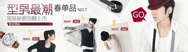 6例是男裝的banner設計,大家在設計男裝時可以很好的妙用直線條,因為直線條是最好表現(xiàn)男性特征的一個設計元素。在生活中不難看見直線是眾多的男性品牌logo設計的根本元素。