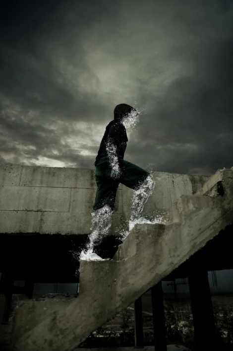 下面用水的素材搭建頭部,注意水花的飛濺方向