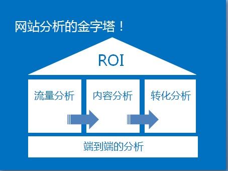 網(wǎng)站分析的整個(gè)過程是一個(gè)金字塔的結(jié)構(gòu)。金字塔的頂部是網(wǎng)站的目標(biāo):投資回報(bào)率(ROI)。要達(dá)到這個(gè)目標(biāo),我們首先需要有訪問者,所以第一部分是網(wǎng)站的流量分析。其次,我們要針對(duì)訪問者的需求,有效的展示我們的內(nèi)容,商品和信息。并且讓客戶喜歡這些內(nèi)容。因此,第二部分我們要對(duì)網(wǎng)站的內(nèi)容進(jìn)行分析。內(nèi)容分析涵蓋的范圍比較廣,包括導(dǎo)航分析,頁面質(zhì)量分析等等。最后,也是最關(guān)鍵的部分,我們要讓訪問者轉(zhuǎn)化為客戶,購買我們的信息和商品。只有訪問者完成了最后的轉(zhuǎn)化,我們才能完成網(wǎng)站的最終目標(biāo)。因此我們要對(duì)網(wǎng)站的轉(zhuǎn)化進(jìn)行分析。最后,每一個(gè)問題都不是單一的原因引起的,每一個(gè)分析也都不是孤立存在的,因此我們還需要串聯(lián)整個(gè)訪問和購買過程。對(duì)網(wǎng)站進(jìn)行端到端的分析。下面,我們來逐一說明每一部分的分析方法和我們要分析的內(nèi)容。